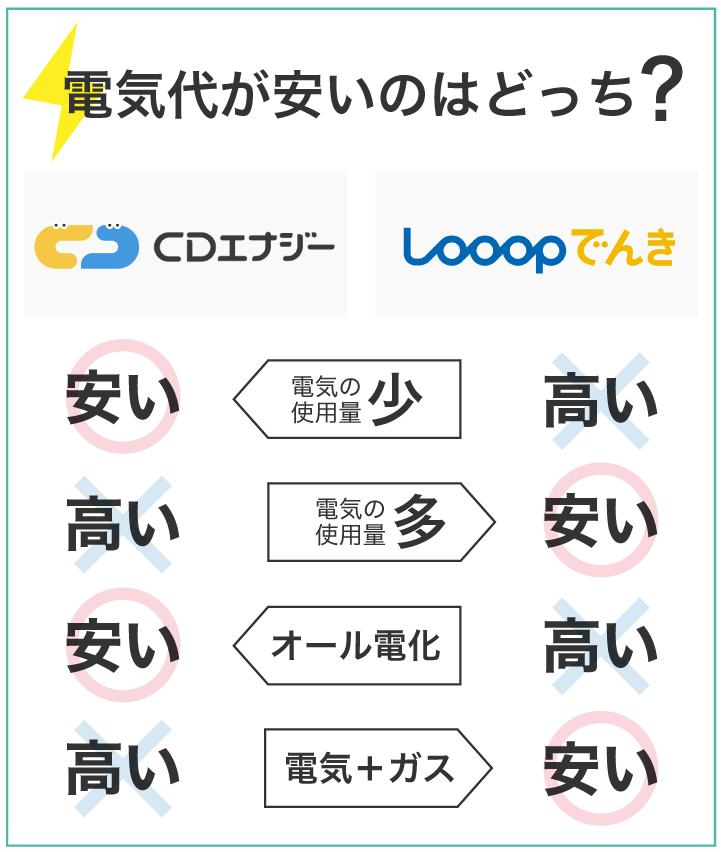 CDエナジーとLooopは電気使用量でどちらが安いか変わる